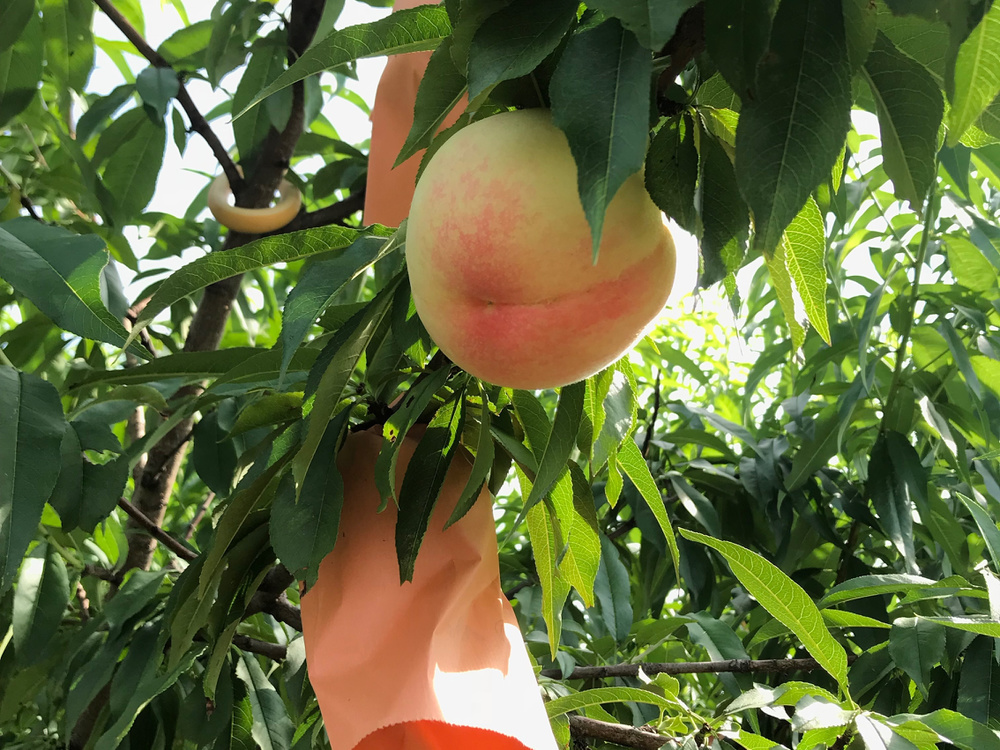 当園では7月上旬からの『加納岩白桃』から9月上旬の『ゴールデンピーチ』までの5品種のは『白桃』と1品種の『黄桃』を栽培しておりますので、