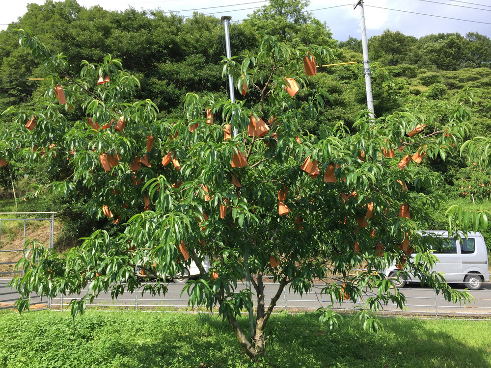真冬の剪定、春先の摘蕾・受粉、初夏の摘果と袋掛けに真夏の収獲。